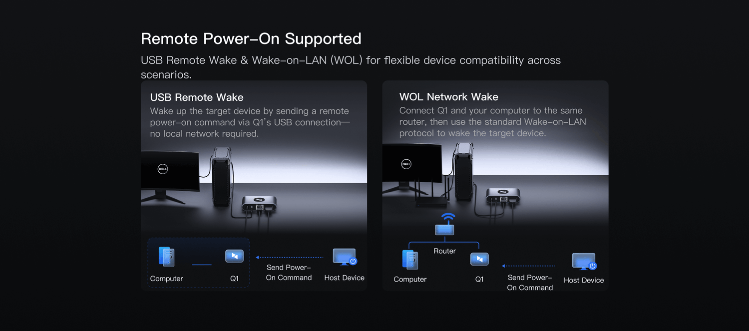 Forget about installation and compatibility issues. Q1 supports remote control of devices running Windows, macOS, Linux, iOS, and Android. No software installation required on the controlled device.